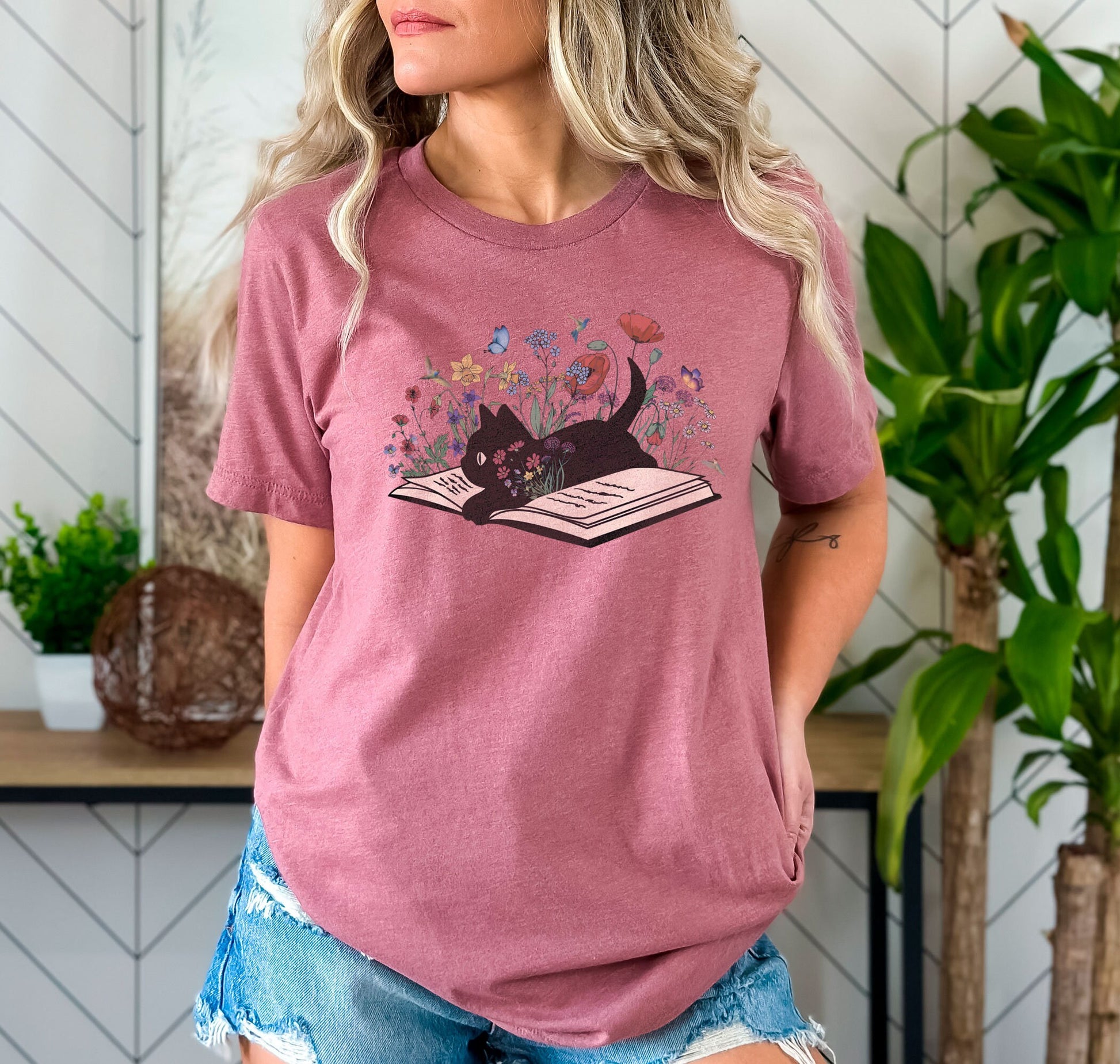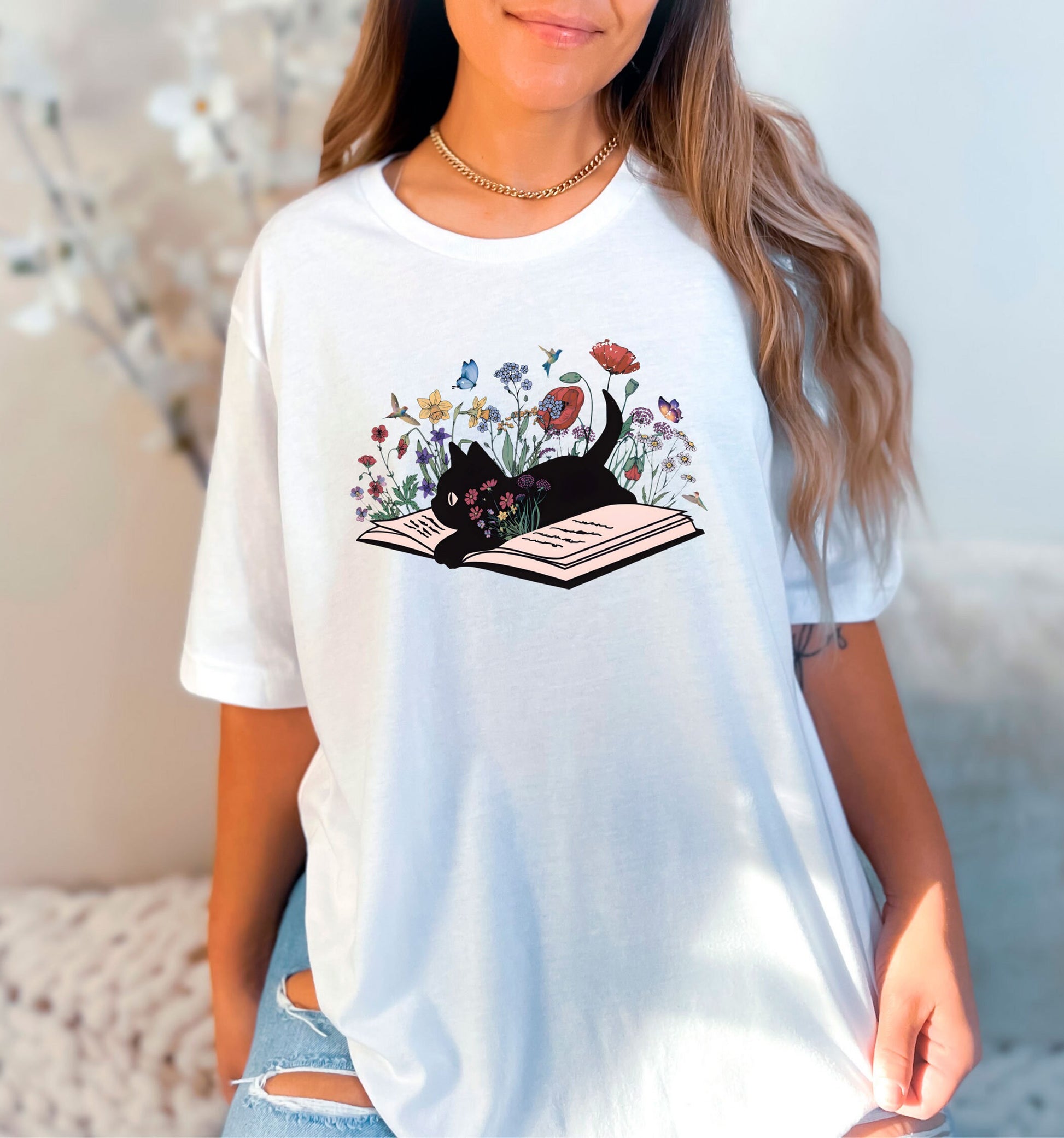 Floral Cat Book Tee V2
